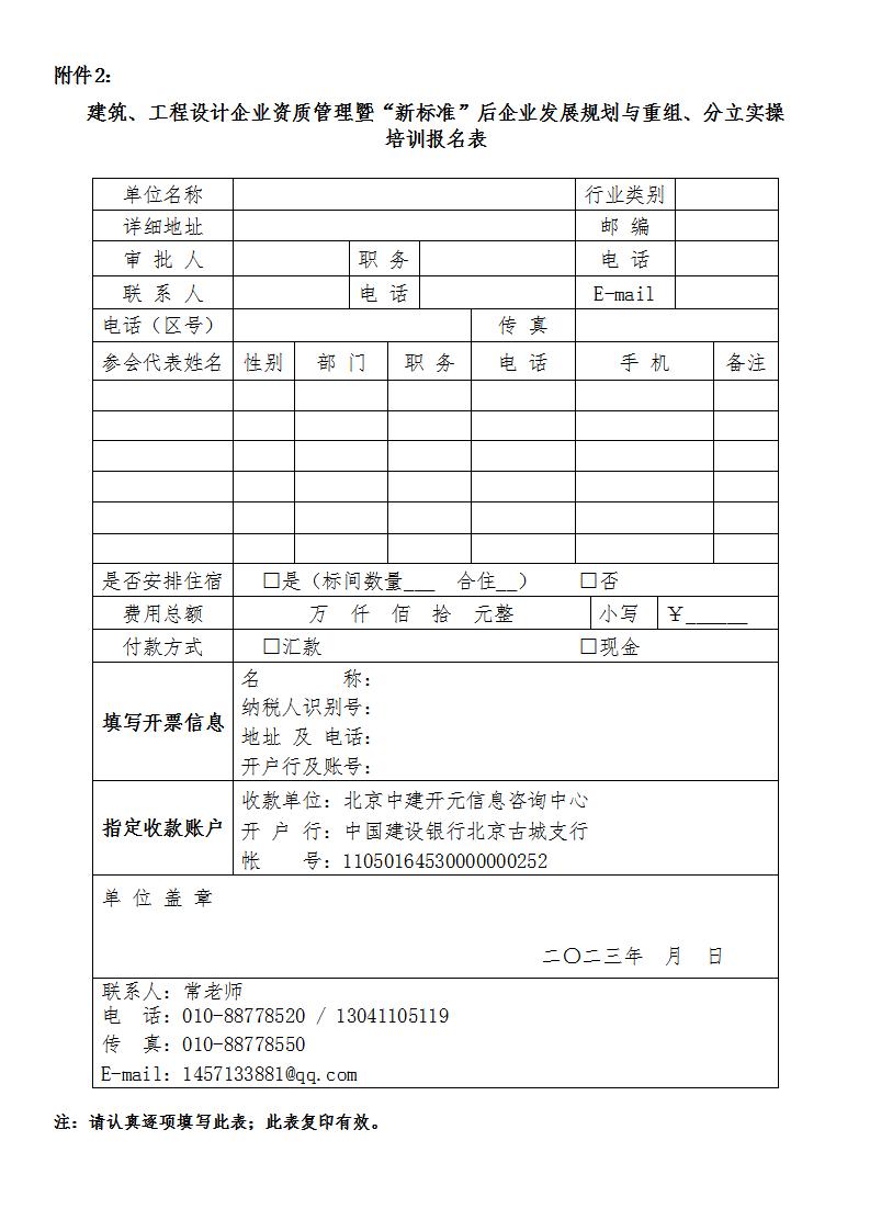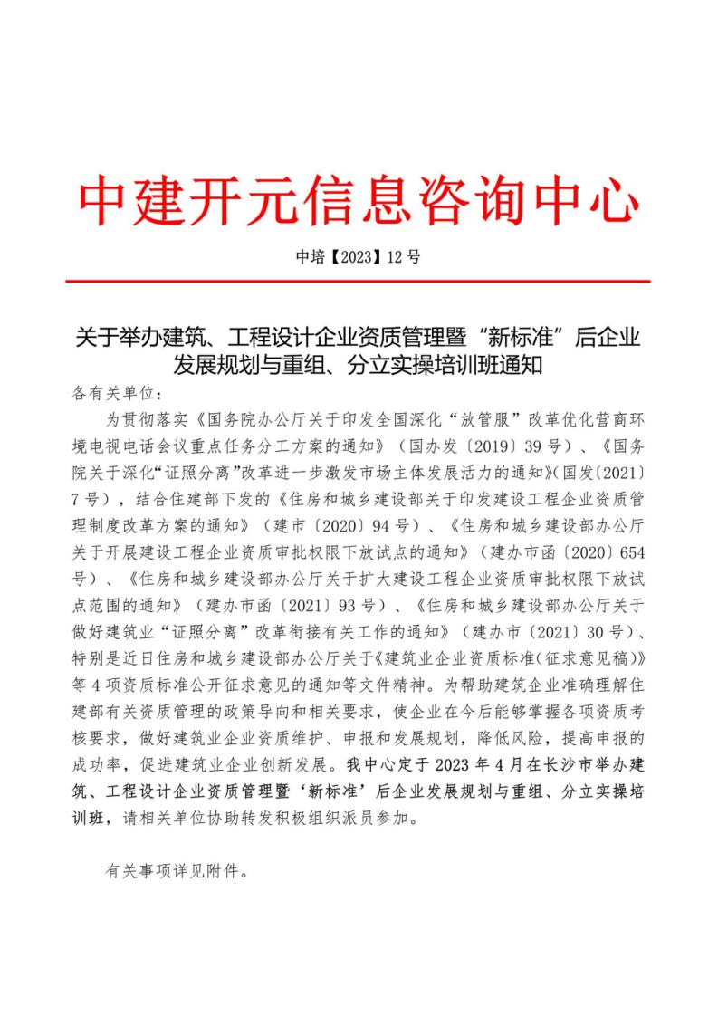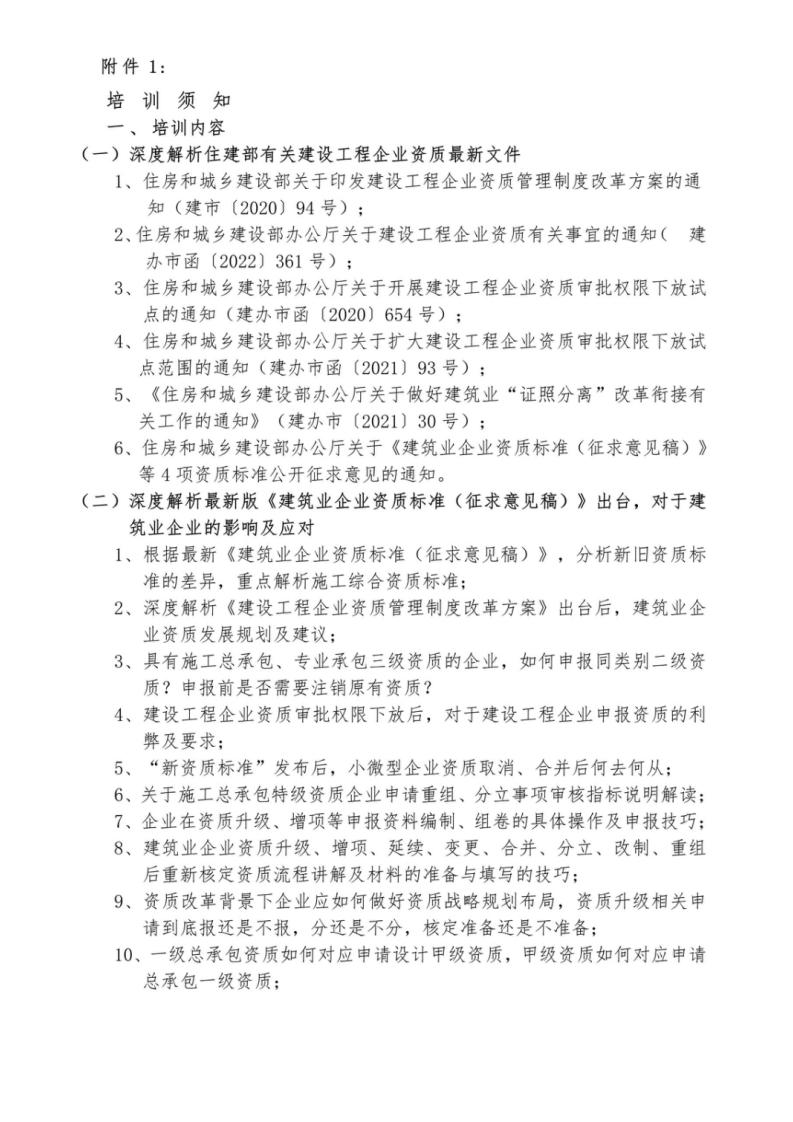 建筑、工程设计企业资质管理暨“新标准”后企业发展规划与重组、分立实操培训日程